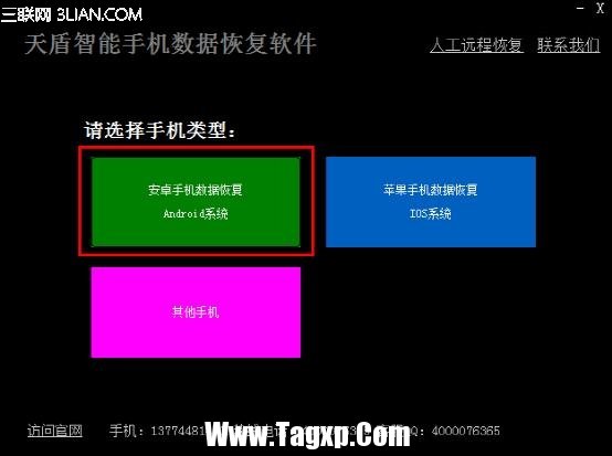 第三步:打开软件,选择手机类型,用户直接点击;安卓手机数据恢复Android系统”按钮。