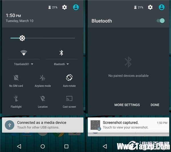 在安卓 5.1 中,Wi-Fi 快捷按钮下面的文字旁边增添了一个明显的下拉三角。点击后,会直接在通知中心罗列出 Wi-Fi 热点列表,用户无需进入设置菜单选择相应的连接目标。