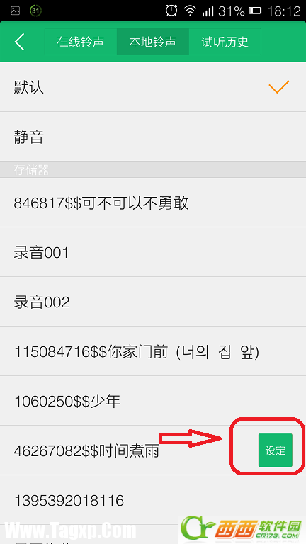 3.选择自己喜欢的铃声,别忘了点击;设定”哦