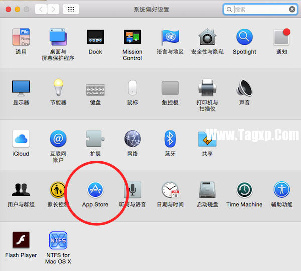 第一步,用户必须先进入;系统偏好设置”,找到Mac app store: