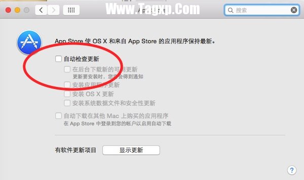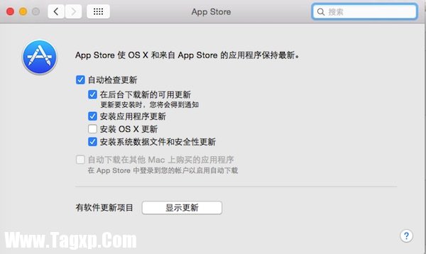 点击进去之后就就能看到Mac App Store的更新设置,这个时候只需要把自动更新设置去掉即可: