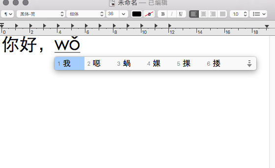 拼音输入法里加入声调显然会大大缩小候选字范围,让打字时寻找结果的时间更短。在苹果电脑 Mac OS X 系统自带的中文拼音输入法里,敲入拼音字母后,按住 option 键,然后每按一下 tab 就切换一次 1/2/3/4 声调。效果如下图所示