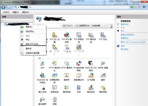 3、点击左边那一栏,右键-添加FTP站点。FTP 站点名称可以随便起,物理路径则选择你想要在iPhone/iPad上访问的磁盘或文件夹。