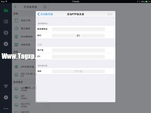9、在iPhone/iPad上下载免费版OPlayer,点击左上角加号,然后选择 FTP 服务器。