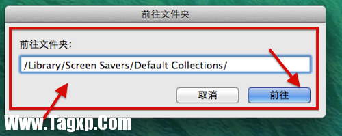 第二步:在输入框输入/Library/Screen Savers/Default Collections/,如下图所示: