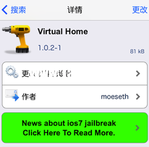 打开cydia-- 搜索 -- 《Virtual Home》-- 安装《Virtual Home》源地址:BigBoss (免费)