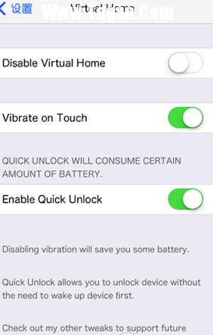 virtual home怎么用呢?virtual home ios8该怎么设置呢?VirtualHome 是首款 Touch ID 触摸模拟物理 Home 按键动作插件,你可以轻触 Touch ID 来实现 home 键一次点按、轻触 Touch ID 二次实现 Home 键双击动作。