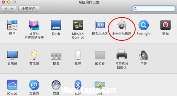 1、首先需要点击左上角苹果标志打开系统偏好设置,选择安全性与隐私;
