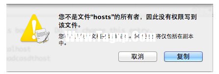 使用Mac OS X系统的用户,在某些时候可能遇到了需要修改系统Hosts文件的情况,那么Mac OS系统如何修改Hosts文件呢?和Windows系统有何区别呢?我们知道其实修改Hosts文件只需要在硬盘中找到该文件,再编辑修改就OK了,但是很多童鞋们发现只要编辑 Hosts 文件就出现”你不是文件 hosts 的所有者,因此没有权限写到该文件”的提示,要解决这个权限问题又比较麻烦,对于刚刚使用 Mac 的用户来说并不容易整明白。
