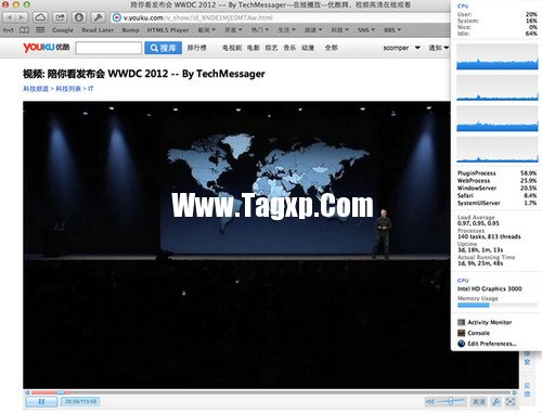 下载安装和普通的插件一样,非常方便。第一时间体验了一下,访问优酷视频自动加载并以Html5的方式播放,没有广告,页面布局也没有变化。感觉就像原来的Flash正常播放一样,不过CPU占用下来了,风扇很安静。选择播放了同一个视频的Flash版本和Html5版本,大家可以看截图中的CPU数据对比。