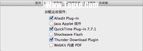 插件,有些网站的插件是以Flash的方式来加载的,例如:支付宝的安全插件,迅雷的下载链接等等,在这里可以选择勾选,这样的访问到基于Flash的插件时会自动加载。