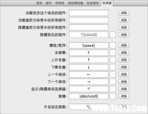 快显菜单,这里勾选上的部分会出现在鼠标右键菜单中,在访问诸如百度音乐、虾米音乐等采用Flash方式在线听音乐的网站的时候,可以通过右键菜单选择;加载所有插件”,避免因为屏蔽Flash导致音乐无法播放的问题。