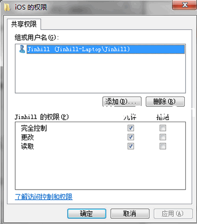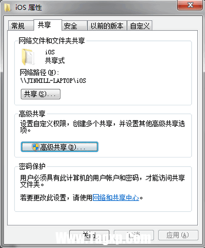 第一步:在先Windows中新建文件夹e:\iOS,右键设置共享属性