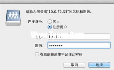 点连接,期间可能会弹出要求输入用户名和密码,填写刚刚在Windows设置共享权限时的用户名和密码