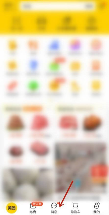 1、打开美团,点击消息打开(如图所示)。