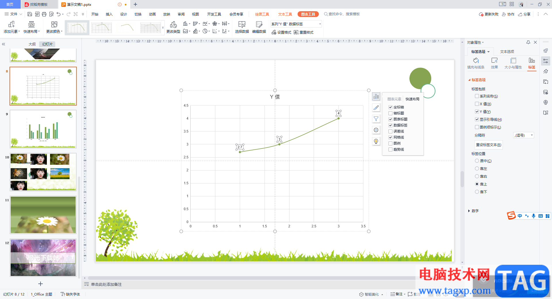 以上就是关于如何使用WPS PPT制作数据曲线图的具体操作方法,在WPS PPT中制作图表是常有的操作,因为我们在演示的过程中,通过图表可以直观的了解到具体的情况,而制作数据曲线图是十分简单的,感兴趣的小伙伴可以操作试试。