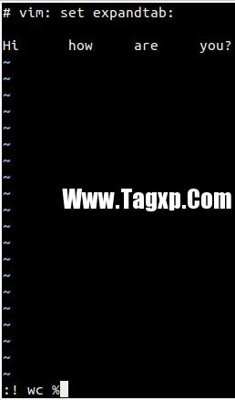 假设你在编辑一个文件,希望知道这个文件包含的行数、单词数和字符数。为了达到这个目的,在 vim 的命令行模式下,只需要输入冒号 :,接下来一个感叹号 !,最后是要执行的命令(这个例子中使用的是 wc)和紧接着的文件名(使用 % 表示当前文件)。