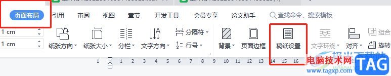 2.用户在页面上方的菜单栏中点击页面布局选项,将会切换出相关的选项卡,用户选择其中的稿纸设置选项