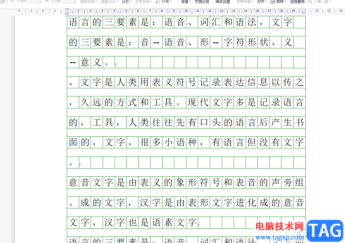 5.回到编辑页面上就会发现普通文档页面已经转换为作文稿纸样式了