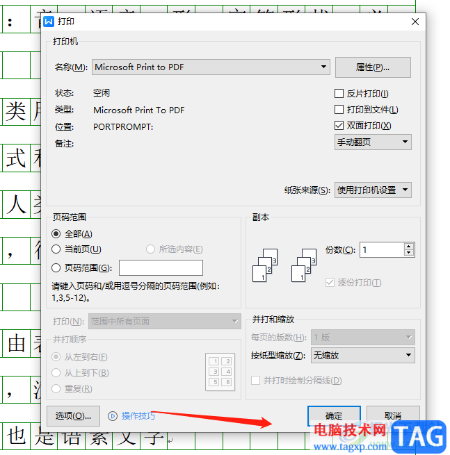 7.用户在打印窗口中根据需求来设置页码范围、打印缩放或是作文稿纸的双面打印等,最后按下确定按钮即可