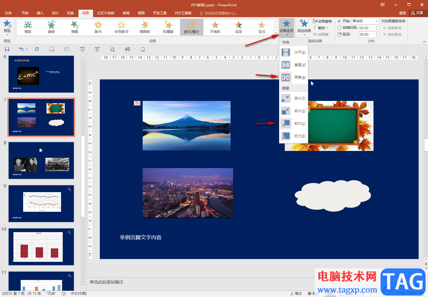 以上就是PowerPoint演示文稿中设置图片放大缩小的方法教程的全部内容了。在“动画”选项卡中,还有很多动画效果可供我们选择使用,小伙伴们可以根据自己的实际需要进行设置和调整。