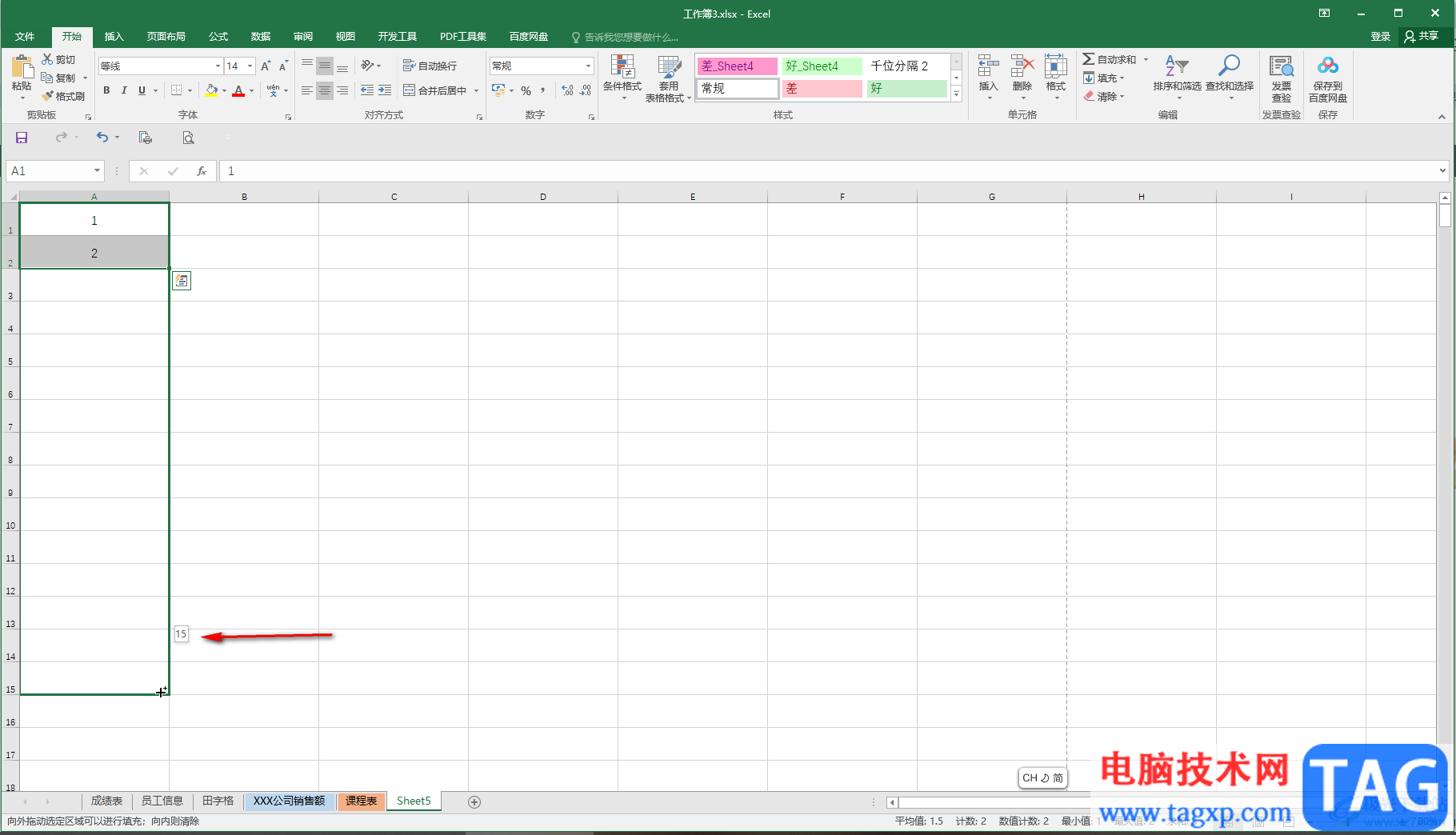 第三步:拖动需要的编号后释放鼠标就可以得到相应的自动递增编号了;