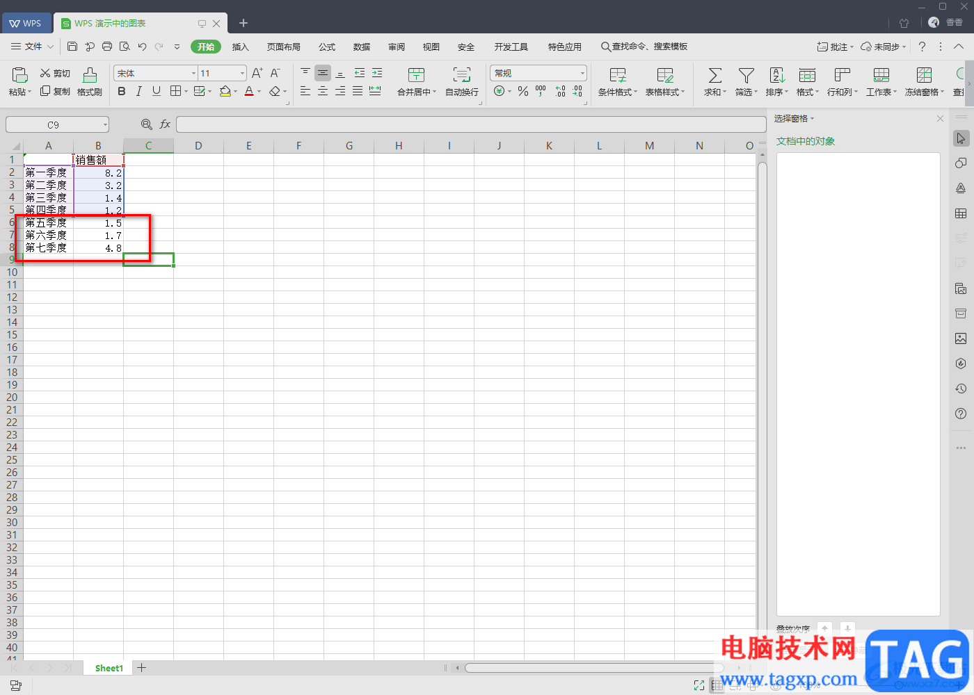 8.这时再返回到我们的WPS PPT编辑页面中,就会看到我们插入的图表的类别已经添加好了,设置好之后,你可以将刚刚打开WPS Excel表格关闭掉就好了。