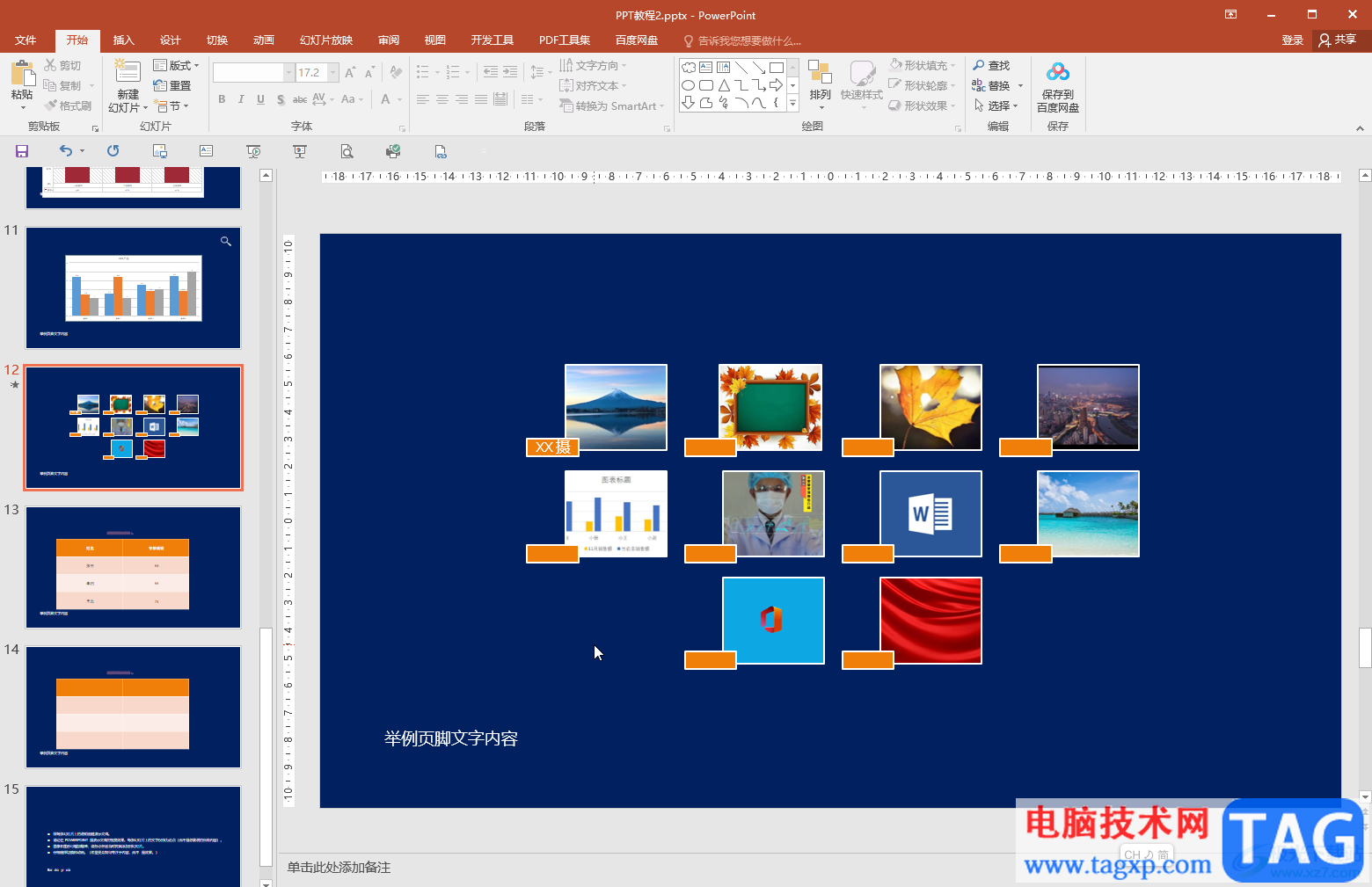 第二步:点击选中元素后在“动画”选项卡中添加喜欢的动画,可以适当调整动画效果;