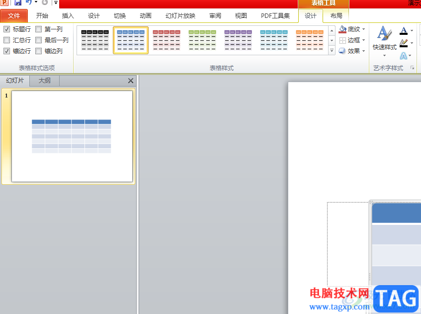 1.用户在电脑桌面上打开演示文稿,并进入到编辑页面上来点击插入的表格