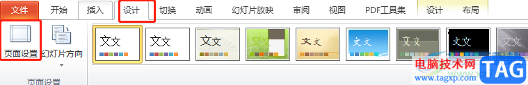 2.接着在页面上方的菜单栏中点击设计选项,将会显示出选项卡,用户选择其中的页面设置选项