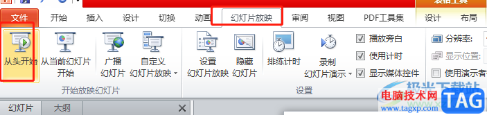6.最后用户回到编辑页面上,点击菜单栏中的放映选项,在显示出来的选项卡中用户选择从头开始选项来播放查看