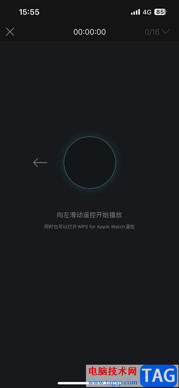 5.此时的手机上会显示出遥控按钮,用户直接向左滑动遥控开始播放,这样用户就可以用手机来遥控ppt了