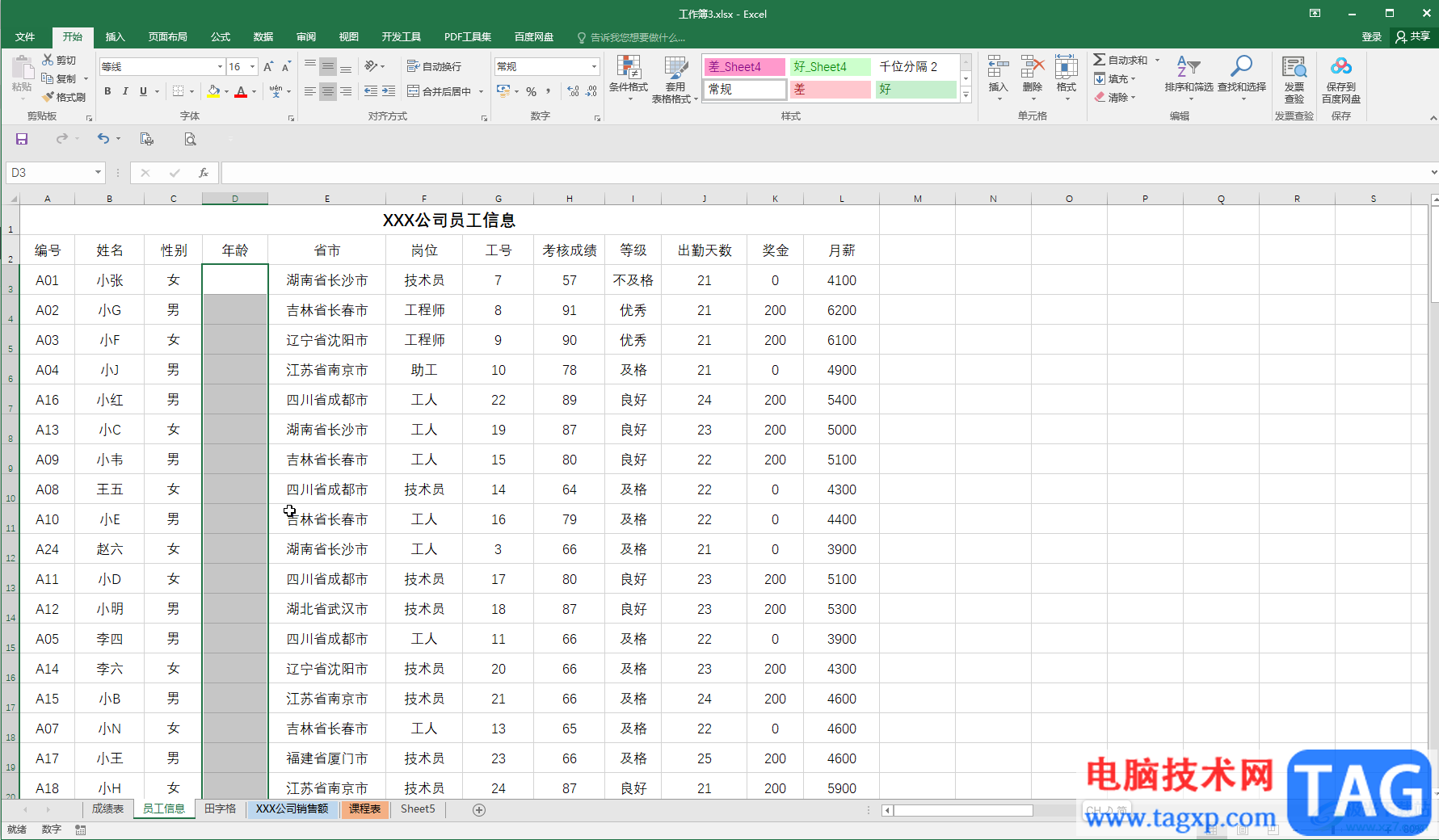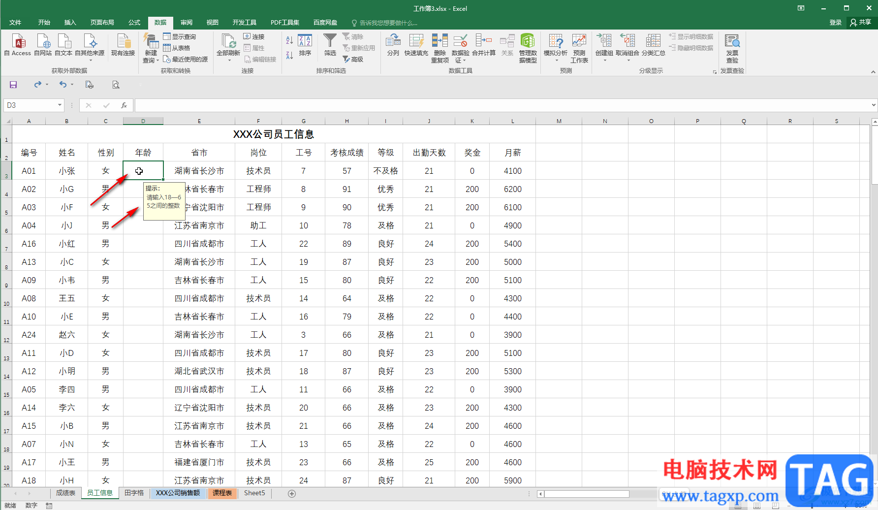第四步:后续定位到单元格需要进行输入时,就会看到相应的提示信息了;