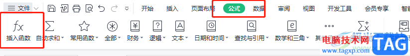 2.接着用户点击菜单栏中的公式选项,在显示出来选项卡中用户选择其中的插入函数选项