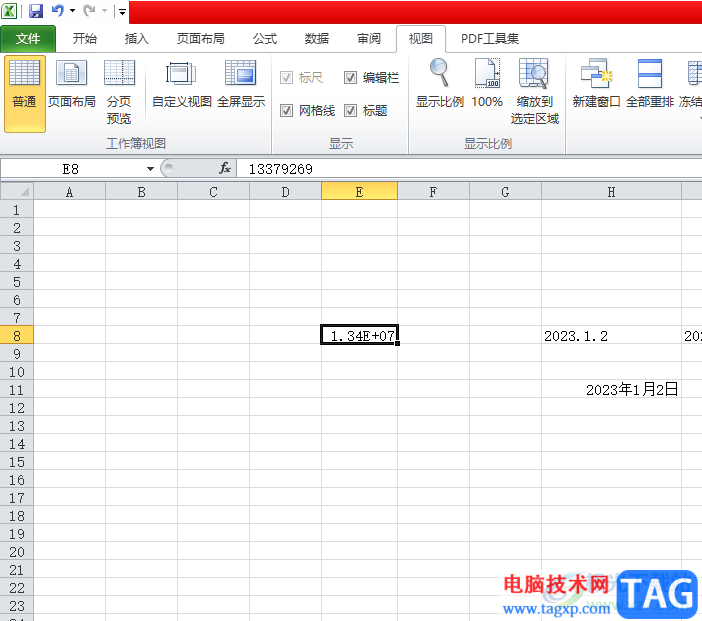 6.回到编辑页面上,用户就会发现单元格中的数字已经全部显示出来了,字母e也消失不见了