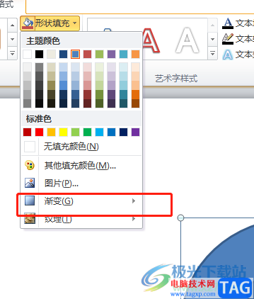 3.将会拓展出下拉选项卡,用户选择其中的渐变选项,会在右侧弹出各种渐变选项