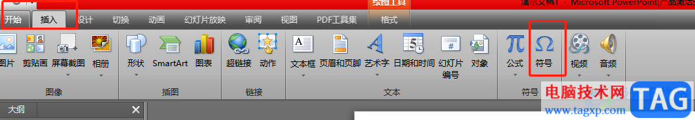 2.接着用户点击菜单栏中的插入选项,在显示出来的选项卡中用户选择符号选项