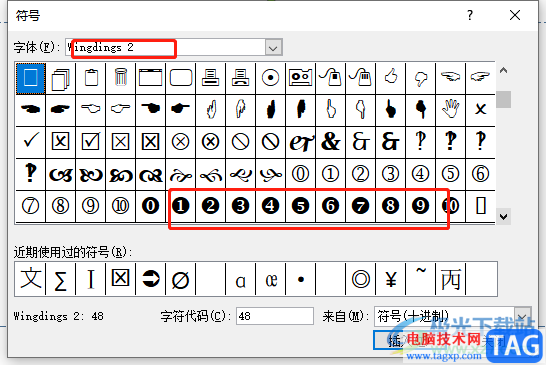 3.用户在符号窗口中,需要将字体选项设置为wingwing2来显示相关的符号类型
