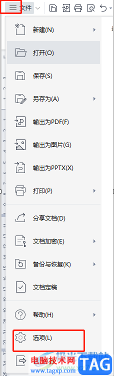 2.接着用户点击页面左上角的文件选项旁的三横图标,将会拓展出相关的功能选项,用户选择其中的选项功能