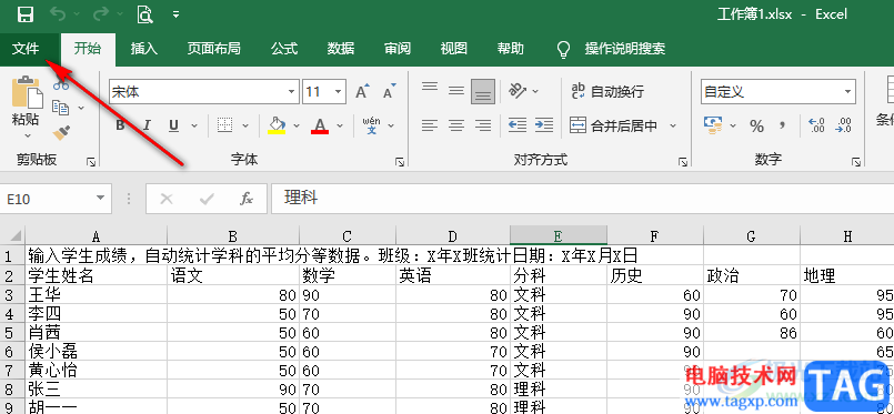 2、第二步,进入Excel页面之后,我们在该页面中点击打开左上角的“文件”选项