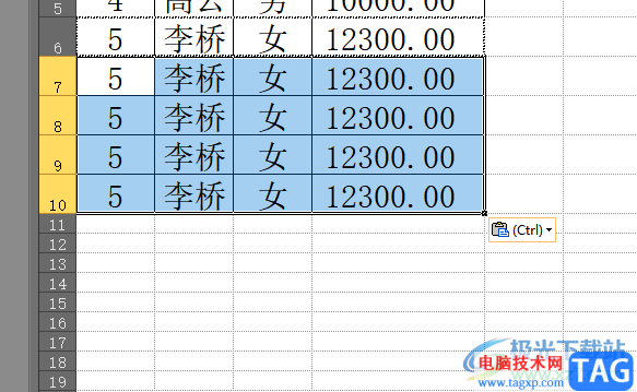 6.最后用户就可以成功得出复制出来的多行单元格了