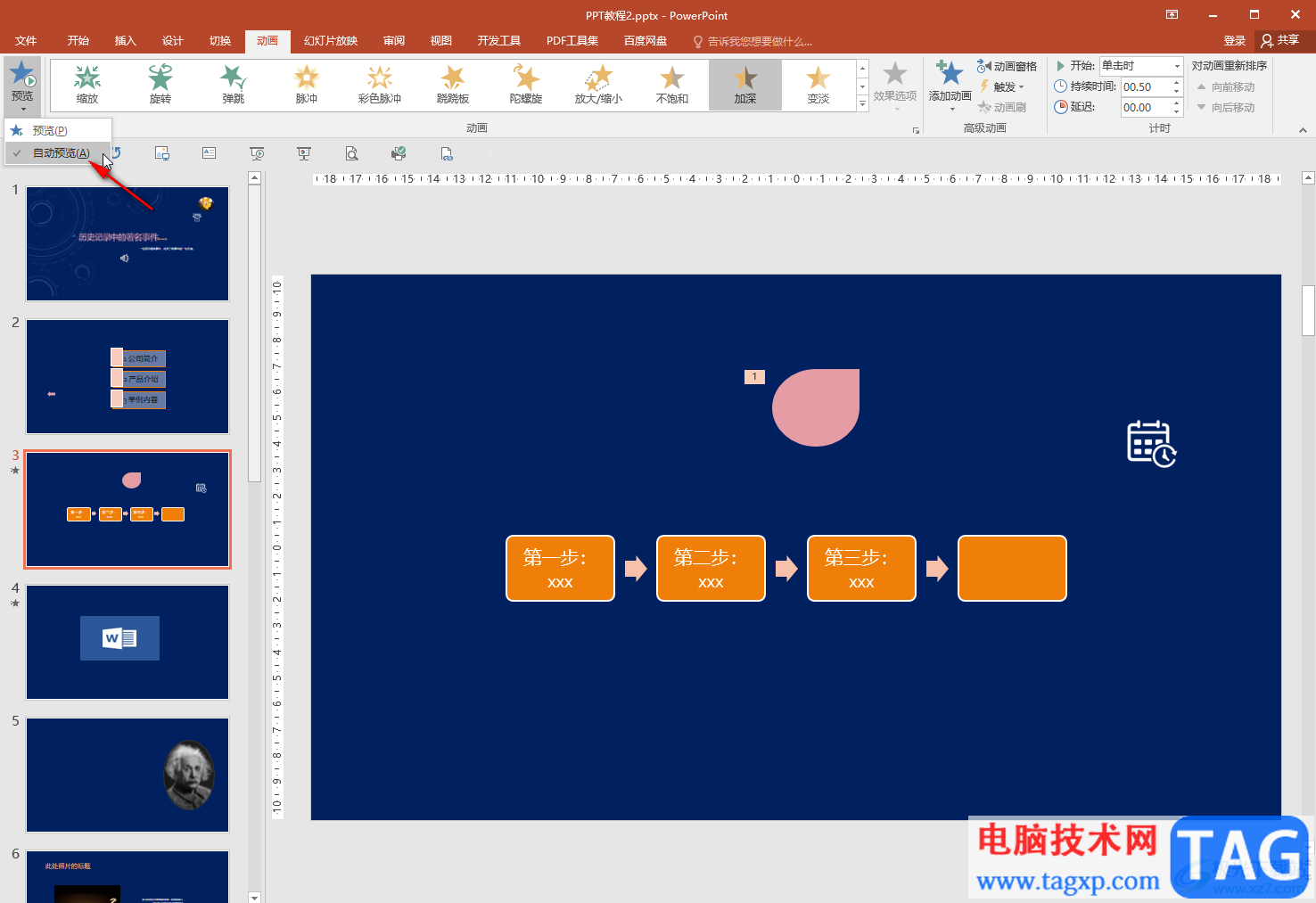 powerpoint演示文稿是一款非常好用的软件,很多小伙伴在需要编辑和制作幻灯片时都会选择使用该软件,在PowerPoint演示文稿中如果我们希望为图片,形状等元素设置颜色加深效果,小伙伴们知道具体该如何进行操作吗,其实操作方法是非常简单的。我们只需要点击选中元素后,在“动画”选项卡中点击下拉箭头,在子选项中点击“加深”按钮就可以轻松实现想要的效果了,添加后可以适当设置开始方式,延迟时间,持续时间等等,然后进行预览,看看具体的加深效果。接下来,小编就来和小伙伴们分享具体的操作步骤了,有需要或者是有兴趣了解的小伙伴们快来和小编一起往下看看吧!