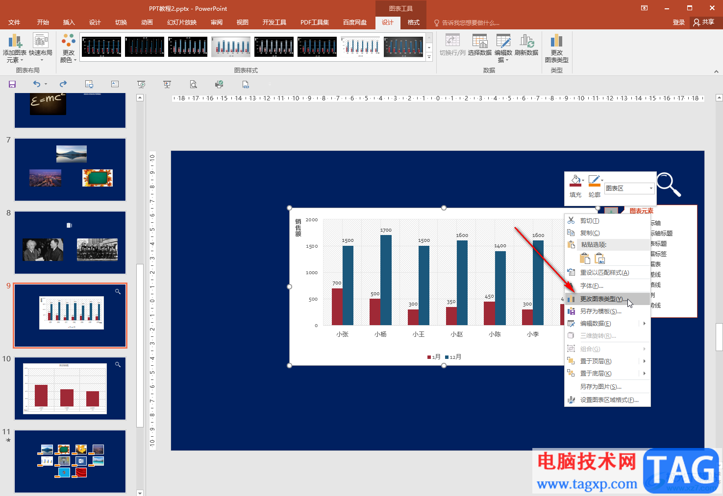 第三步:或者右键点击一下后在子选项中点击“更改图表类型”;