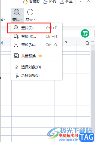 3.将会拓展出相关的下拉选项,用户直接点击其中的查找功能,或者是按下键盘上的ctrl+f快捷键来打开查找窗口