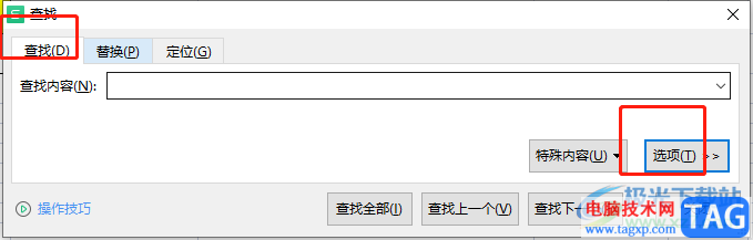 4.这时用户在查找窗口中,需要在默认的查找选项卡中点击右下角的选项按钮
