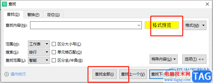 7.最后用户在查找窗口可以看到显示出来的格式预览,接着直接按下查找全部按钮即可获得个数
