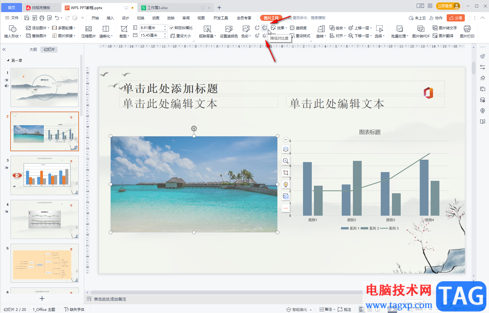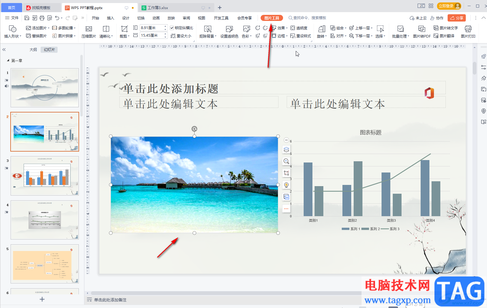 第二步:点击选中图片后会自动出现“图片工具”,点击一下;