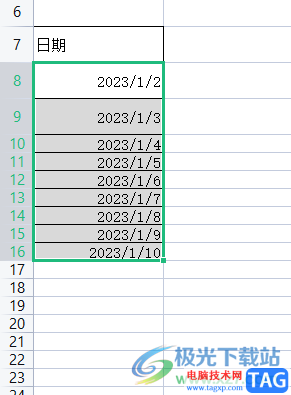 1.用户首先在电脑桌面上打开wps软件,并进入到表格的编辑页面中选中日期一栏