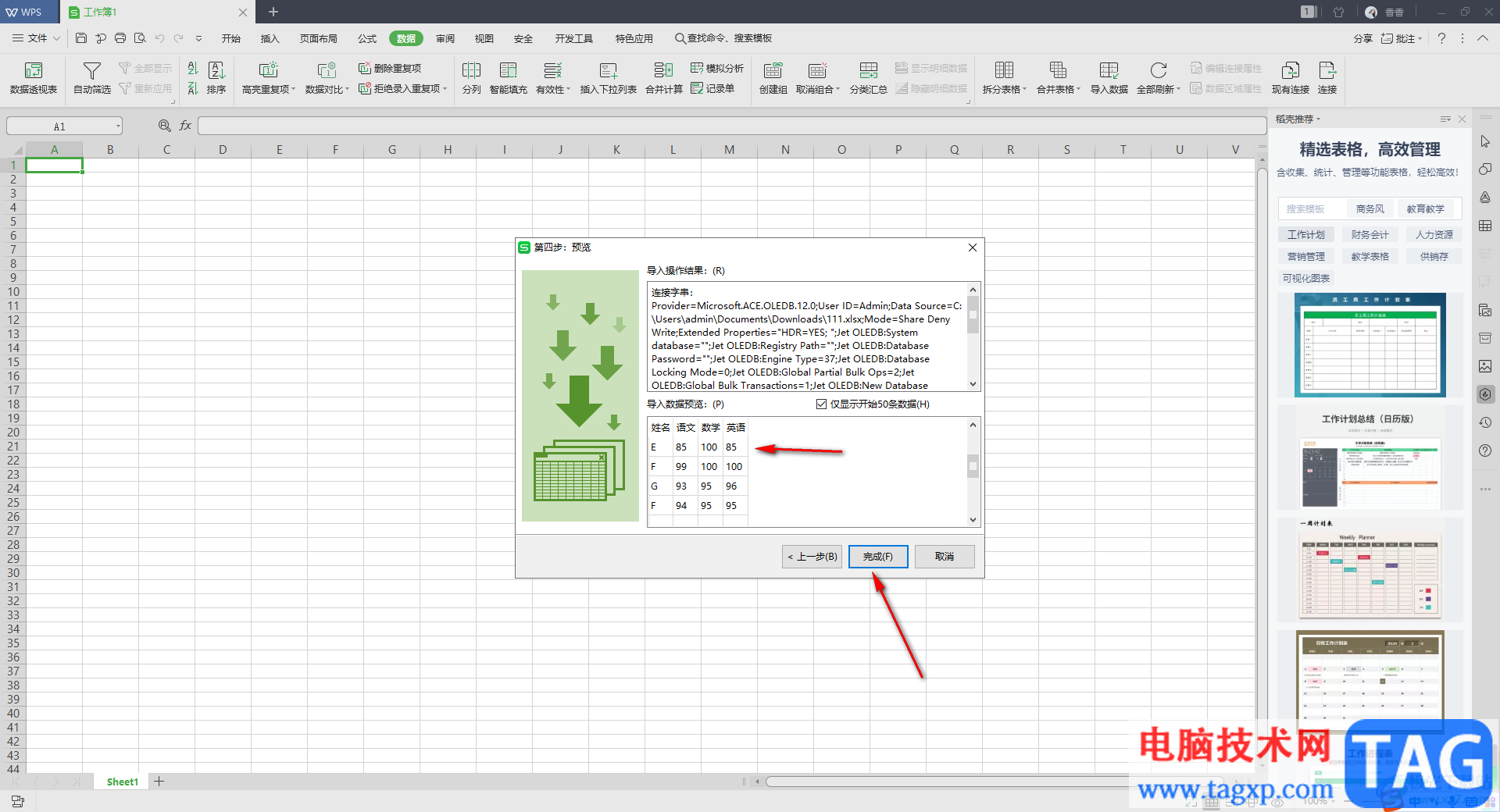 8.接着在该页面中,你可以预览一下导入数据的一个效果,觉得可以的话就点击片【完成】按钮完成操作。