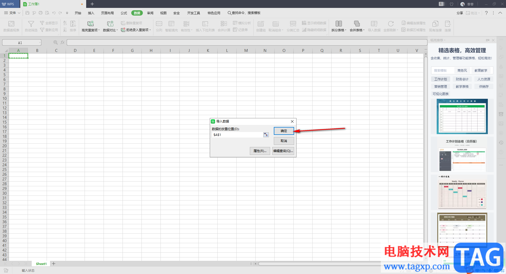 9.最后,你需要确定一下导入数据的一个显示位置,点击确定即可。